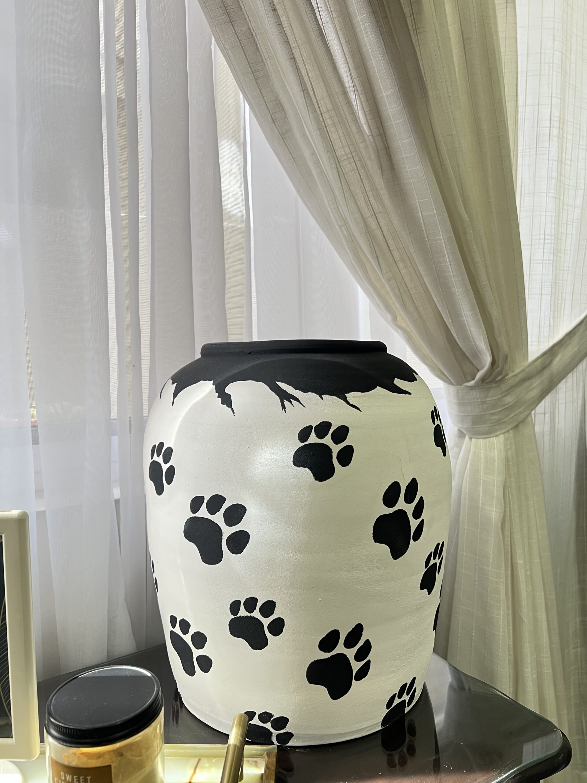 Playful yet thoughtfully designed, the Paws Vase features a soft white base accented with hand-painted black paw details. The contrast adds character while keeping the overall look clean and minimal.